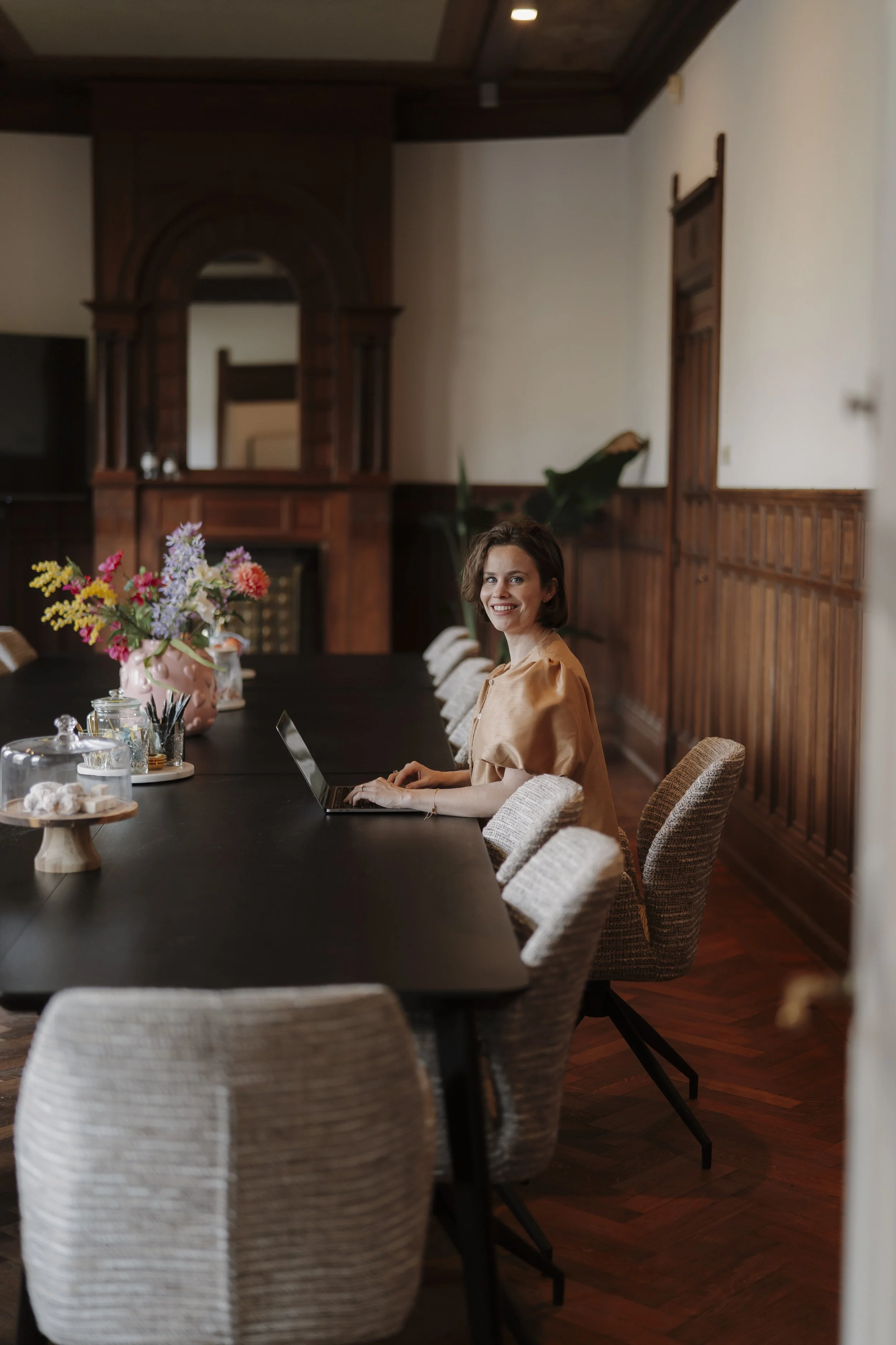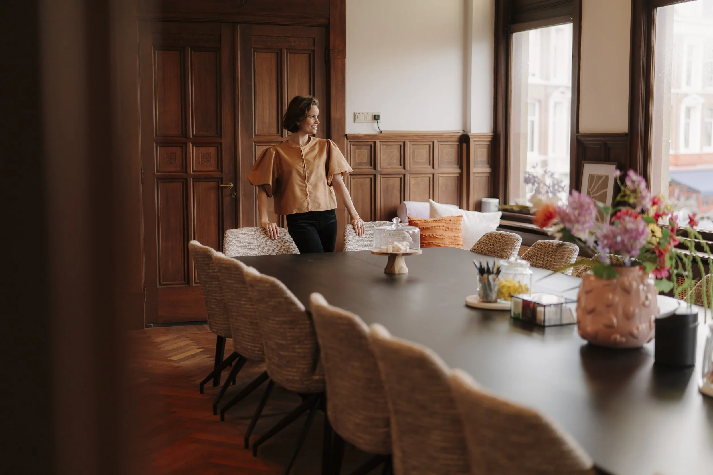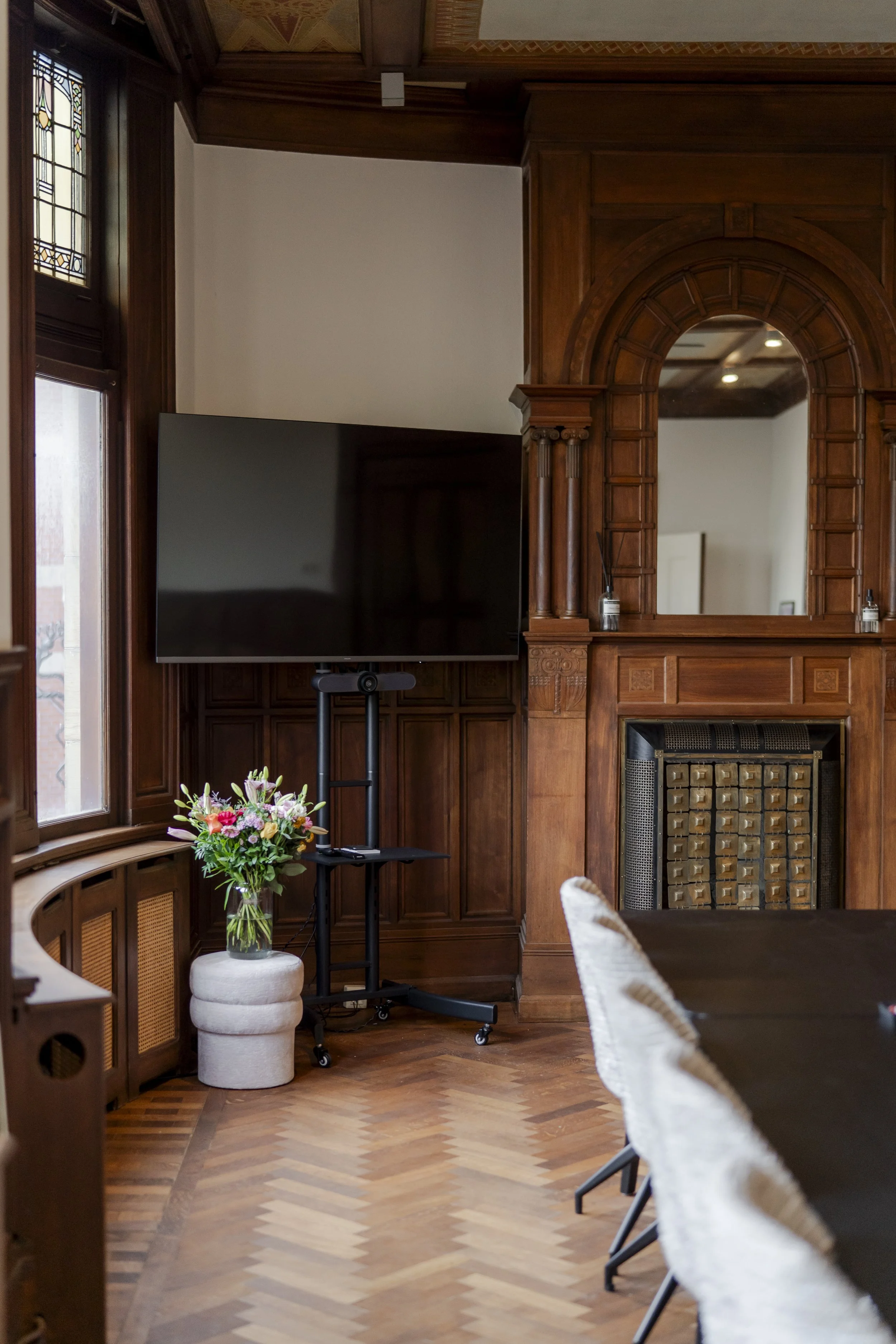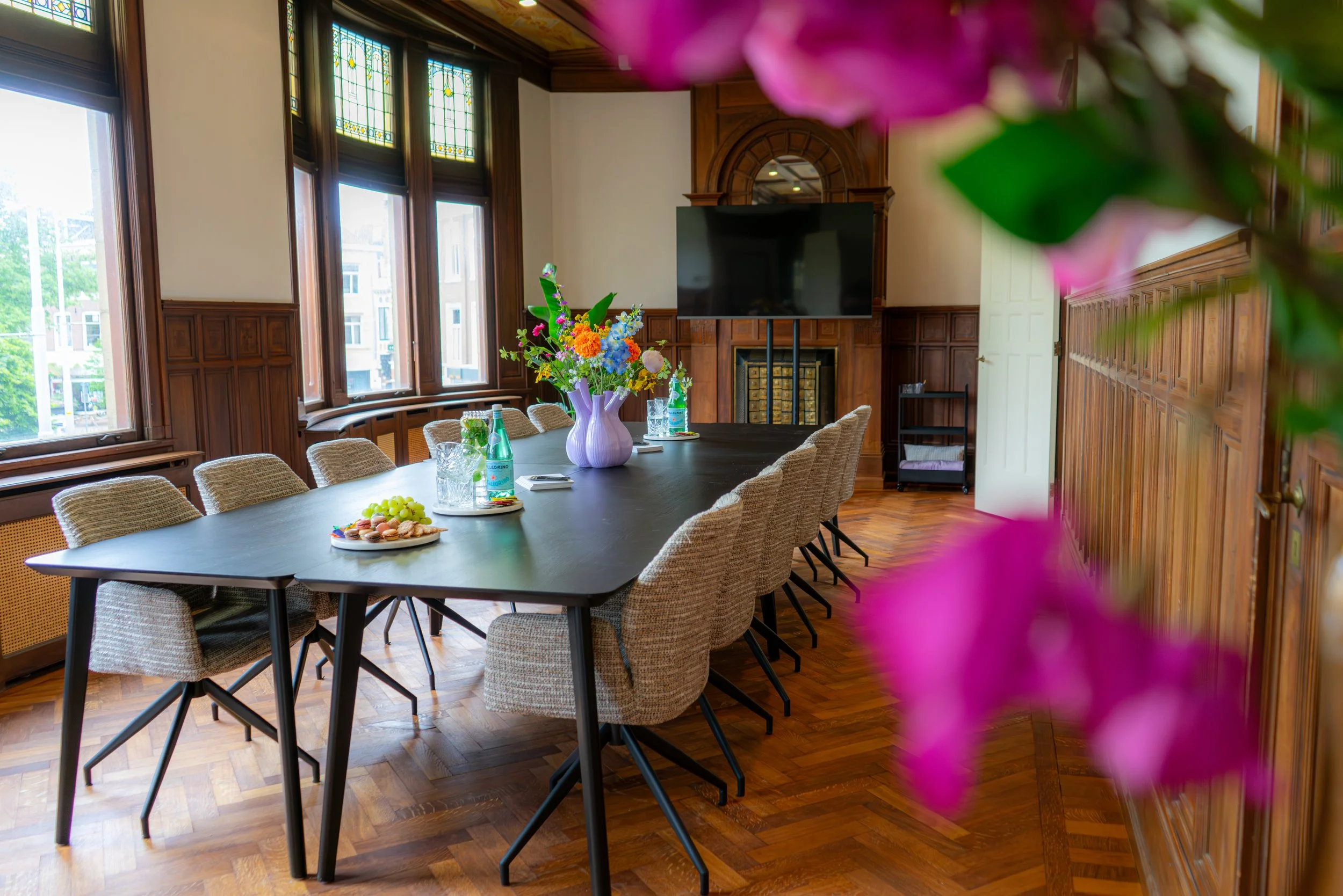 Het pand ademt historie en authenticiteit, terwijl het tegelijkertijd is voorzien van moderne faciliteiten. Denk aan een groot presentatiescherm, snelle wifi en een professionele koffiemachine. Alles wat nodig is voor een comfortabele en productieve sessie is aanwezig, zonder dat dit afbreuk doet aan de sfeer en uitstraling van het monumentale karakter.